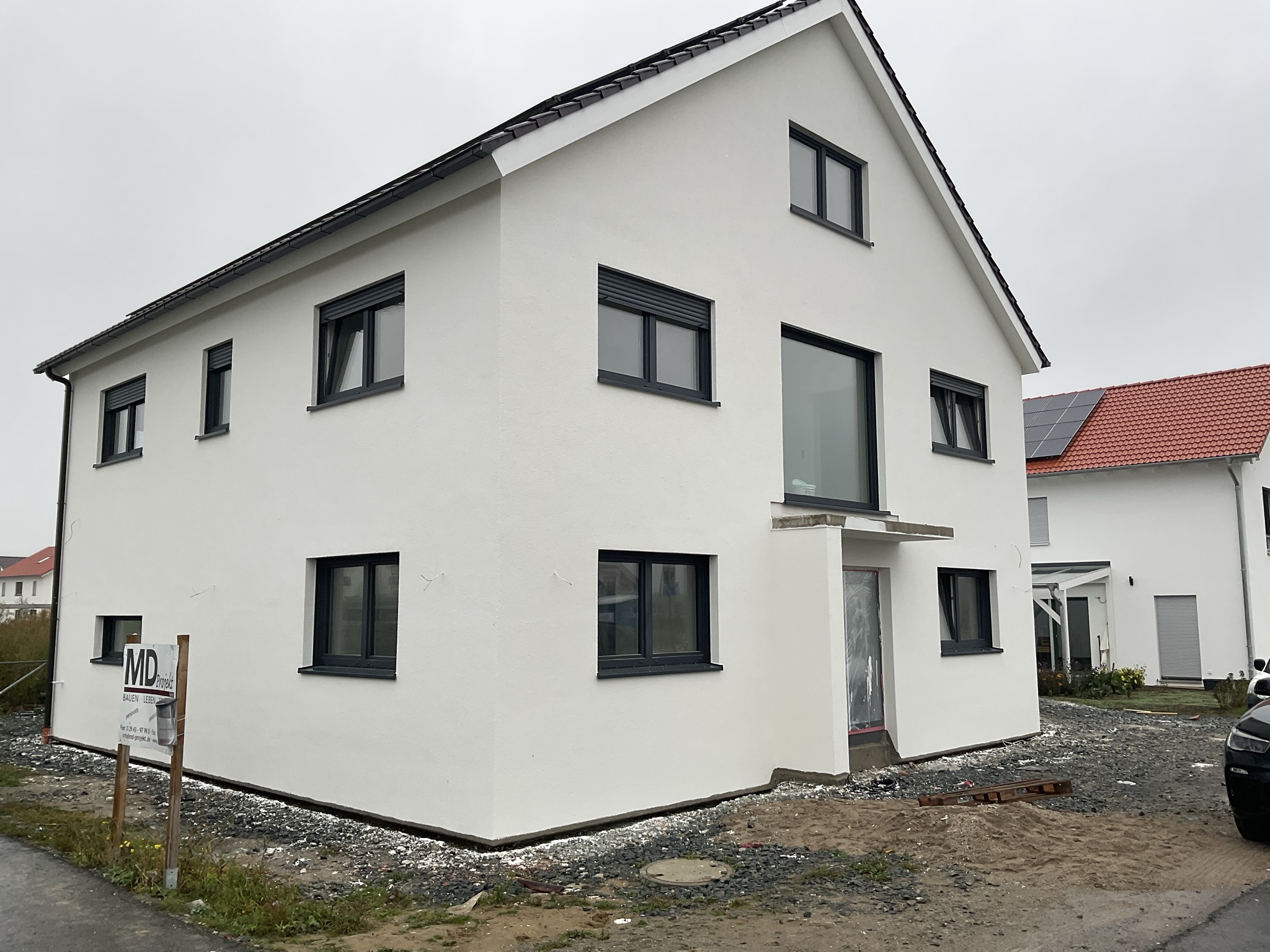 - 3-fach verglaste, außen farbig folierte Fenster und eine moderne Aluminium-Haustür
